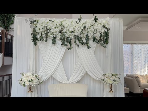 “DIY Wedding Backdrop: Roll Up Fabric Floral Delight”