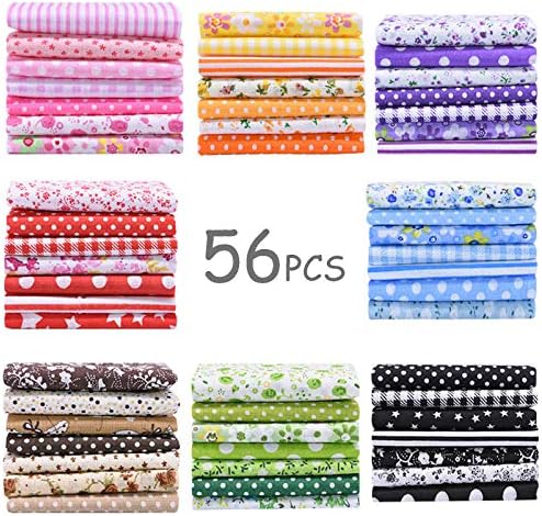 UPSYTIO offers a bundle of 56 pieces of multi-colored patchwork cotton fabric. The fabric squares measure 25 x 25 cm (9.8 x 9.8 inches) and come in 50 different patterns, including floral, dots, stripe, grid, and ripple designs. Every pattern is unique and suitable for various crafts such as DIY projects, sewing, decorations, scrapbooking, and making diaper bags, dolls clothes, and mobile phone bags. The fabric is made of 100% high-quality cotton and is perfect for cutting into shapes and sewing stylish patterns. The package includes 56 fabric patchwork squares and the product dimensions are 9.8 x 9.8 x 0.01 inches. The item model number is BZ-0503 and it was first available on June 3, 2020. The manufacturer is Zgoo and the ASIN is B089NKZP6Q. The fabric squares are machine cut and suitable for quilting and sewing.