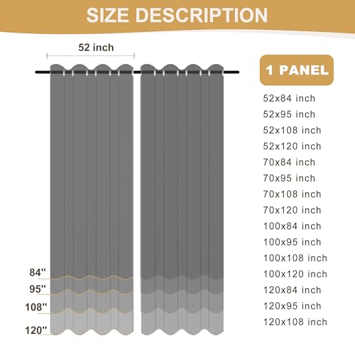 - WHAT'S IN THE PACKAGE? Each package includes 1 outdoor curtains. Each curtain measures 52 wide by 84 inch long. The curtains are finished with rust proof grommets/eyelets with a 1.6-inch diameter to easily accommodate the pole.
