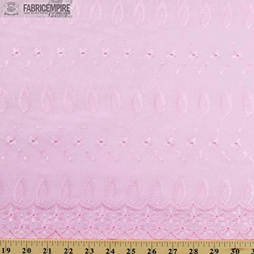 Daisy in Leaf 100% Cotton Embroidered Eyelet Fabric 42" Wide Sold by The Yard (Pink)