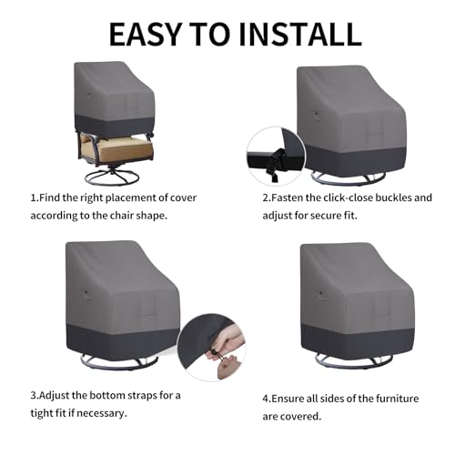 Premium Waterproof Swivel Chair Cover Set – Heavy-Duty, Windproof, and Custom Fit Outdoor Furniture Protection (30Wx34Dx38.5H inch, Gray/Dark Gray)