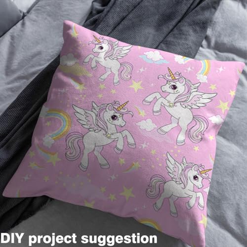Fancy Unicorn Fabric for Decoration by The Yard – Pink Animal Horse Cartoon Outdoor for DIY Projects, Starry Sky Clouds Rainbow for Room Decor and Upholstery – 1 Yard, 36" L x 59" W