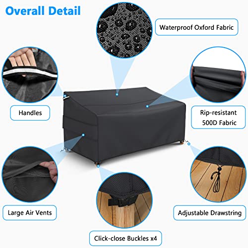 • Exceptionally Waterproof Outdoor Loveseat Cover: The outdoor Loveseat cover is made of 600D heavy duty oxford fabric coated PVC back, very durable and scratch-resistant. The fabric is processed with waterproof treatment, can be 100% waterproof and the water won't sleep into the cover on rainy days.