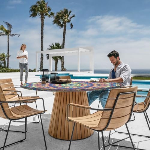 Stylish Waterproof Boho Round Tablecloth for 36-44″ Tables – Perfect for Outdoor Picnics, Parties, and Home Decor