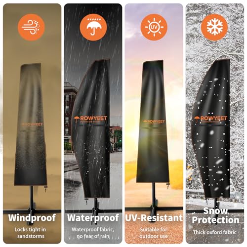 ROWYEET Umbrella Covers for Outdoor Umbrellas 9-12ft, 420D Oxford Fabric Patio Umbrella Cover Waterproof UV-Resistant Protection for Offset Umbrella & Parasol (Fits Cantilever Umbrella up to 9′S/12′R)