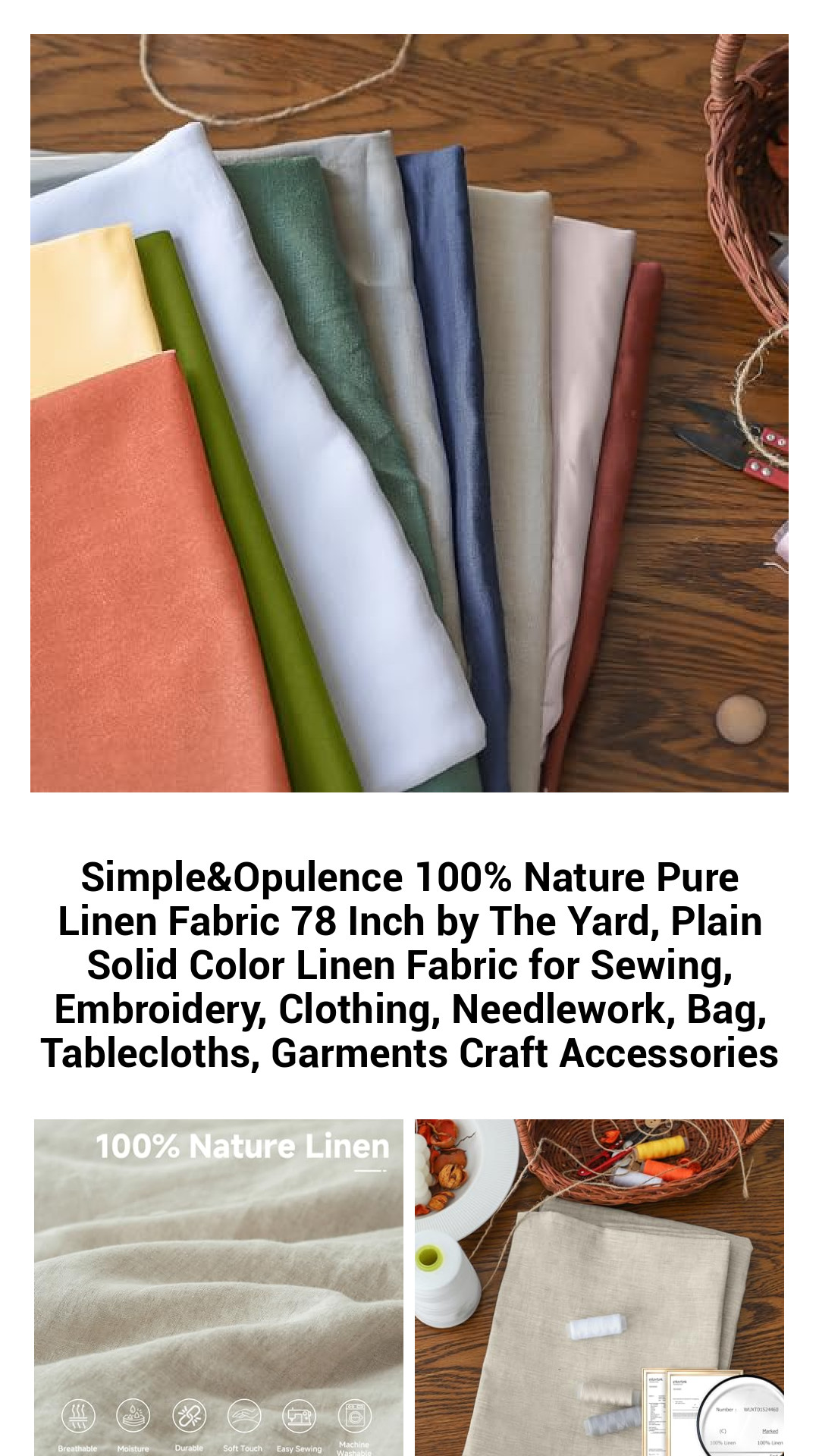 Simple&Opulence 100% Nature Pure Linen Fabric 78 Inch by The Yard, Plain Solid Color Linen Fabric for Sewing, Embroidery, Clothing, Needlework, Bag, Tablecloths, Garments Craft Accessories