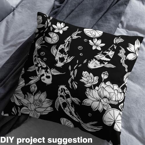 Exquisite Koi Fish Fabric with Lotus Blossoms – Waterproof Decorative Upholstery Material for Home and Outdoor DIY Projects – 1 Yard Cut, Stylish Black and White Design