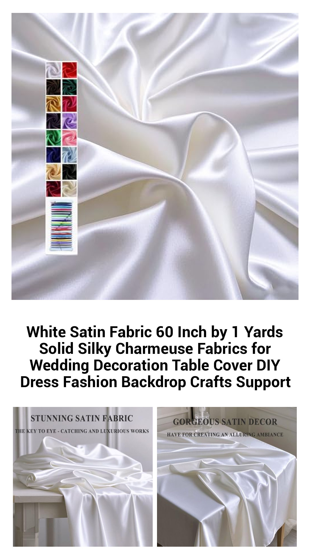 White Satin Fabric 60 Inch by 1 Yards Solid Silky Charmeuse Fabrics for Wedding Decoration Table Cover DIY Dress Fashion Backdrop Crafts Support